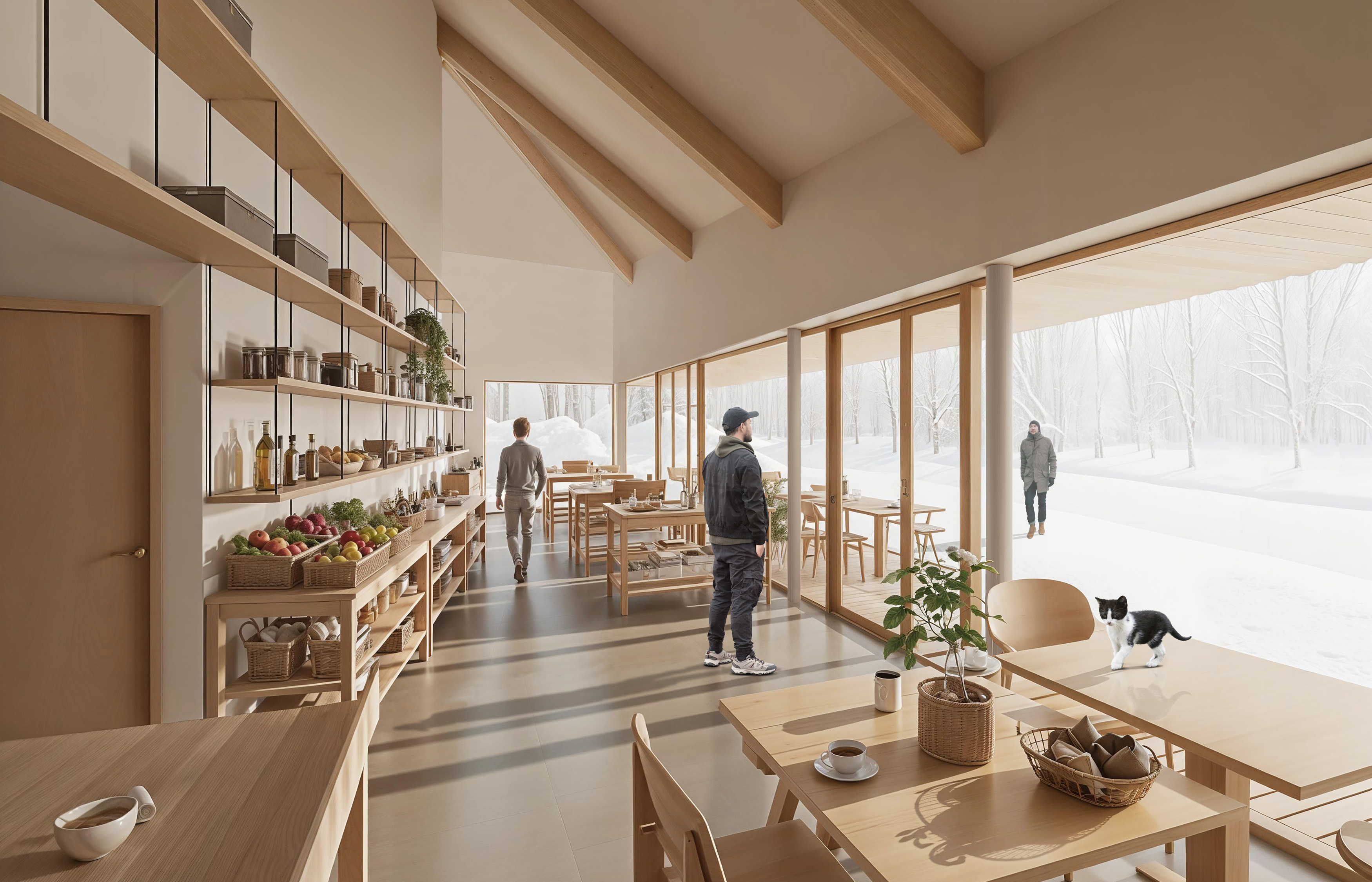 Dans un site d’exception en bordure de rivière, au pied du mont d’or, ce bâtiment joue des codes de l’architecture vernaculaire régionale pour s’intégrer à son contexte.
