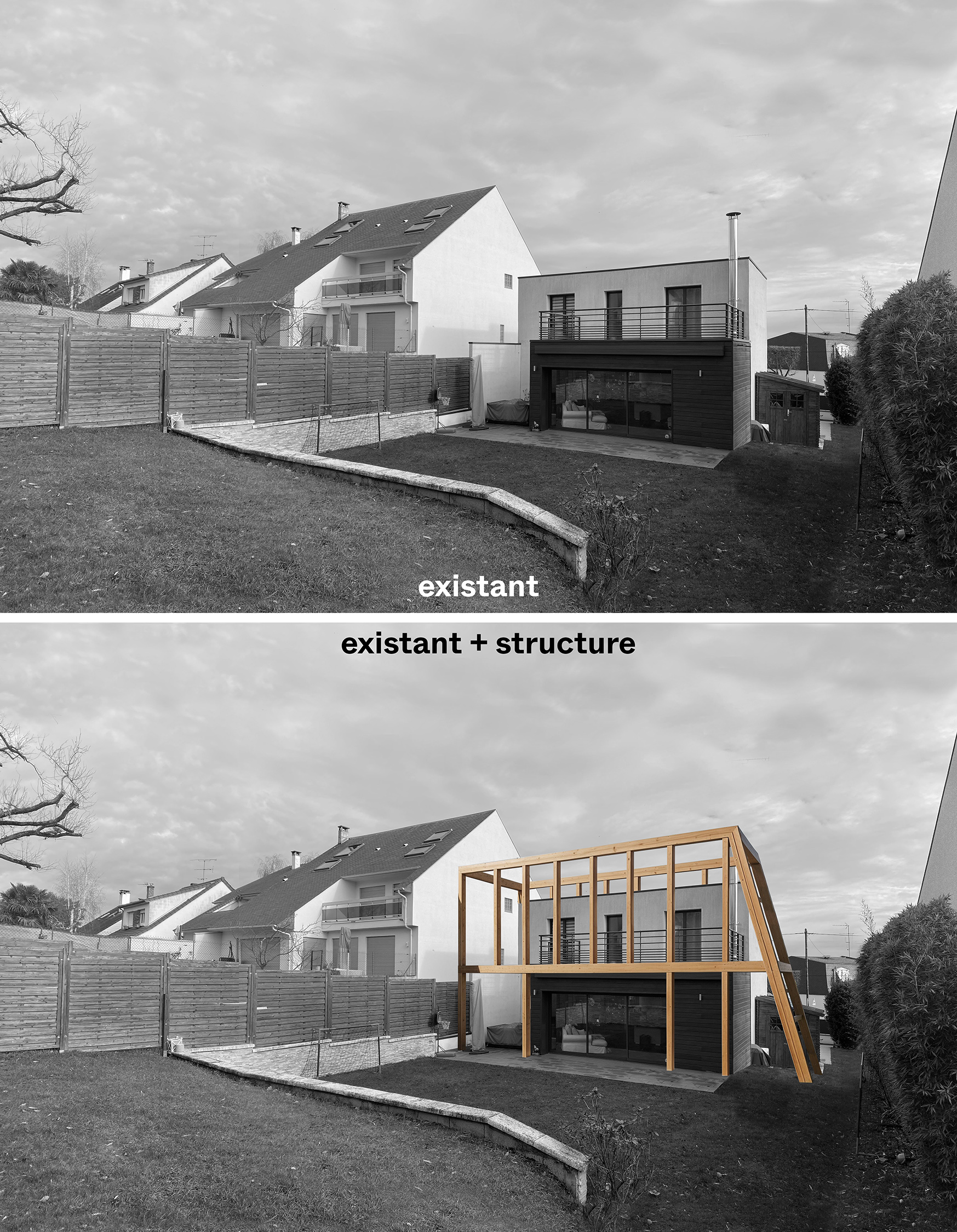 Avec deux chambres supplémentaires, une pièce de jeux et un abri extérieur, l’extension répond aux besoins nouveaux de la famille tout en requalifiant la façade arrière. Afin de minimiser l’empreinte carbone et les nuisances de chantier de cette construction, l’extension est conçue en ossature bois.